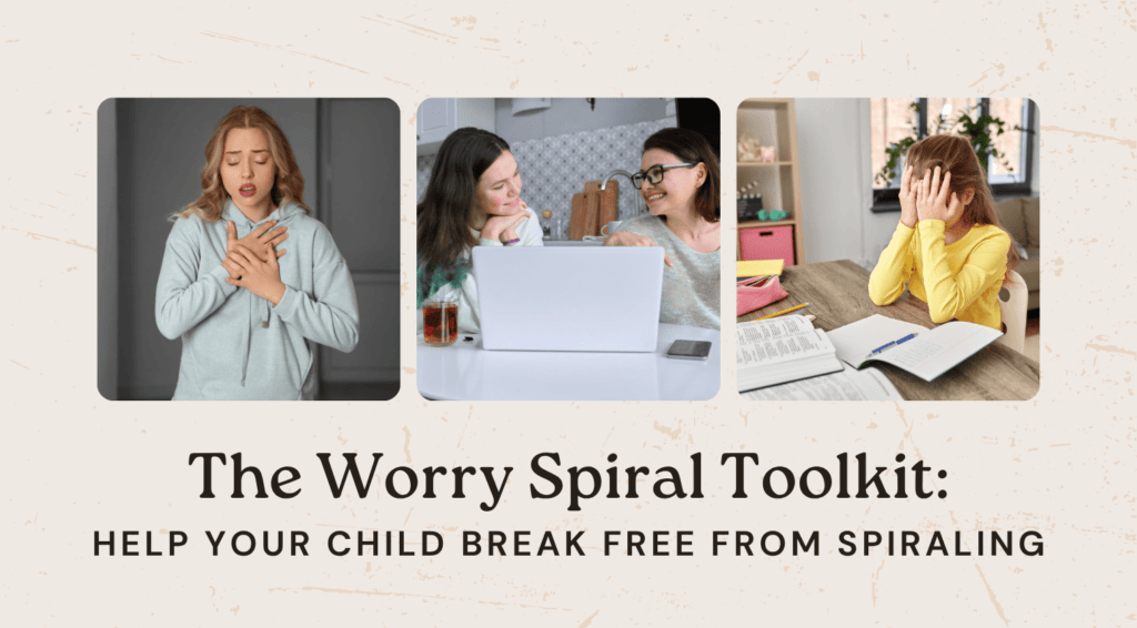 The Worry Spiral Toolkit gives parents simple tools to help kids manage anxiety—calming exercises, parent scripts, grounding strategies, and a clear roadmap for every stage of a worry spiral.